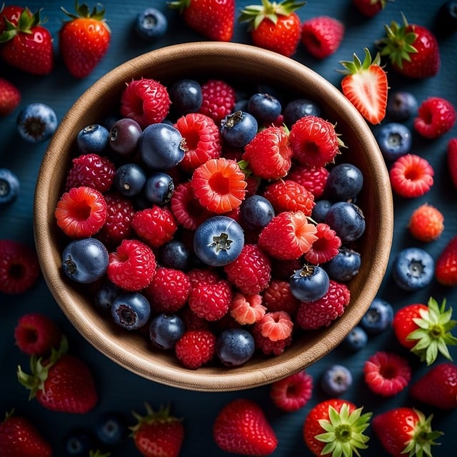 블루베리는 항산화 성분이 풍부하여 혈관 건강에 도움을 줍니다. 특히, 블루베리에 포함된 안토시아닌은 혈압을 낮추는 데 효과적입니다. 블루베리를 간식으로 먹거나 요거트에 넣어 섭취하면 좋습니다.